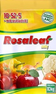 Rosaleaf Żółty 10-52-5+2MgO+Te. Nawóz przeznaczony do nawożenia dolistnego i fertygacji wszystkich upraw sadowniczych, rolniczych i ogrodniczych. Całkowicie rozpuszczalny w wodzie.