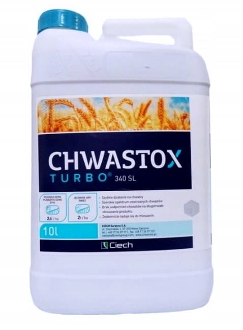 CHWASTOX TURBO 340 SL to najpopularniejsze rozwiązanie do zwalczania chwastów dwuliściennych w zbożach. Zawiera dodatkową substancję, która działa szybko i skutecznie, zwalcza trudne chwasty, takie jak chaber, mak i przytulia czepna . W połączeniu z produktem np :Fenuxar, skutecznie zwalcza także miotłę zbożową, oferując kompletną ochronę przed chwastami jedno- i dwuliściennymi. CHWASTOX TURBO jest niezbędnym elementem strategii antyodpornościowej chwastów dwuliściennych.