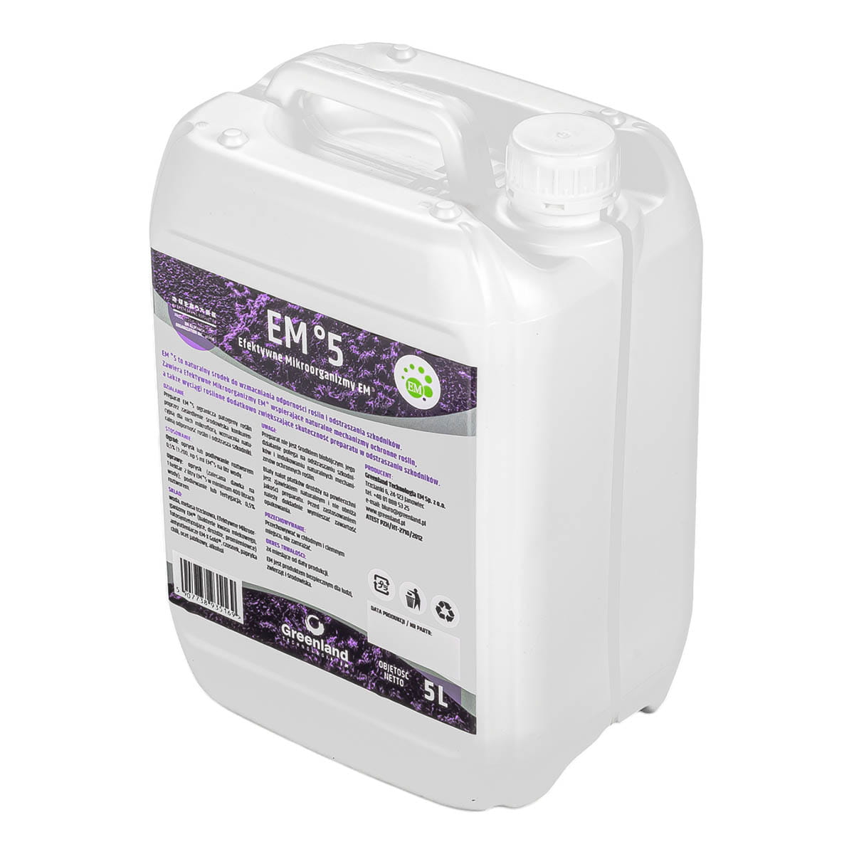 EM 5 jest preparatem mikrobiologicznym, służącym do wzmocnienia odporności roślin i odstraszenia szkodników. Zawiera specjalną kompozycję Efektywnych Mikroorganizmów, wspierających naturalne mechanizmy ochronne roślin, a także fermentowane wyciągi roślinne, dodatkowo zwiększające skuteczność preparatu w odstraszaniu szkodników.