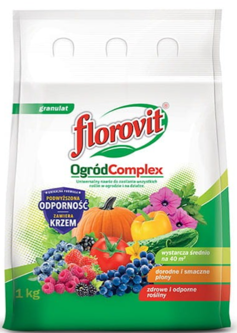 Florovit Ogród Complex to nawóz zawierający krzem oraz składniki pokarmowe w odpowiednich proporcjach niezbędnych do prawidłowego wzrostu i rozwoju drzew i krzewów owocowych, warzyw oraz roślin ozdobnych.