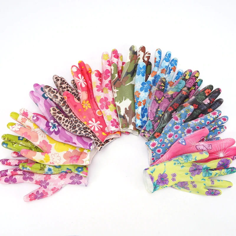 Funkcjonalne i cieszące oko rękawice z kolorowego materiału, powlekane nitrylem, przeznaczone do prac ogrodowych i porządkowych. Rękawiczki posiadają piękny wzór i są idealne np. do pielenia ogrodu.